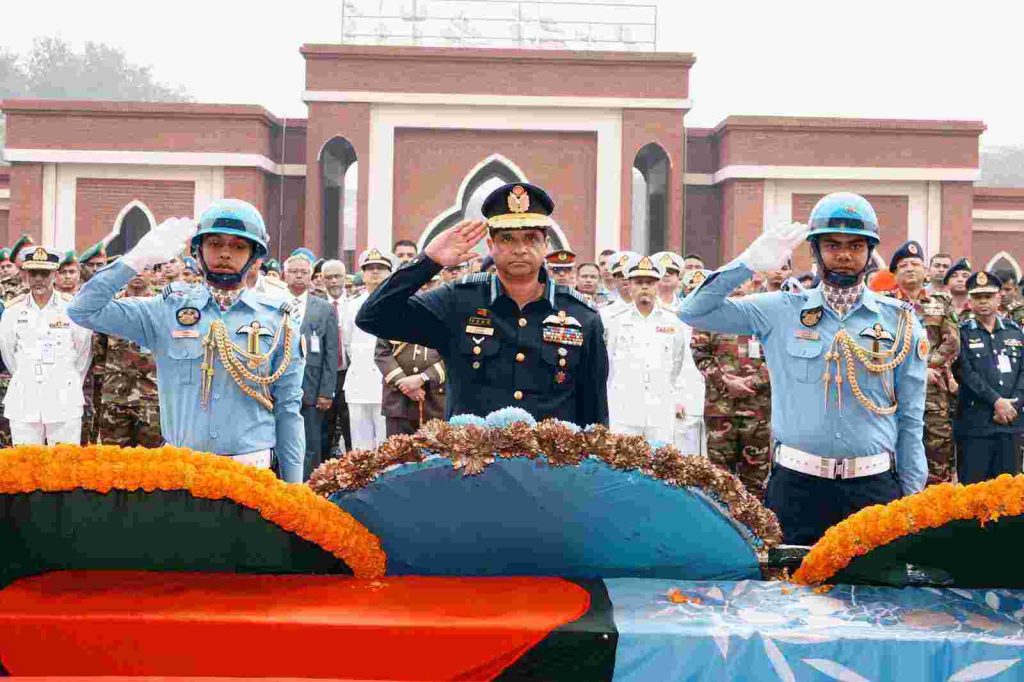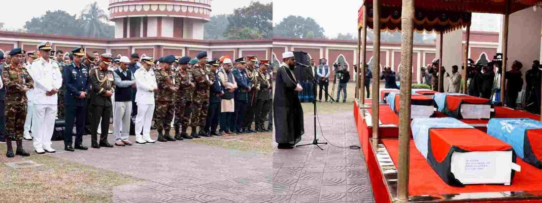 শাহাদাতবরণকারী বাংলাদেশ শান্তিরক্ষীদের রাষ্ট্রীয় মর্যাদায় শ্রদ্ধা নিবেদন ও নামাজে জানাযা অনুষ্ঠিত