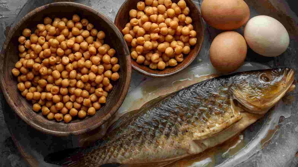 - উপযোগী খাবার: মসুর ডাল, ছোলা, সেদ্ধ ডিম, হালকা তেলে রান্না করা মাছ (বিশেষ করে ফ্যাটি ফিশ যেমন স্যালমন বা রুই-কাতলা), মুরগির মাংস (চামড়া ছাড়া)।