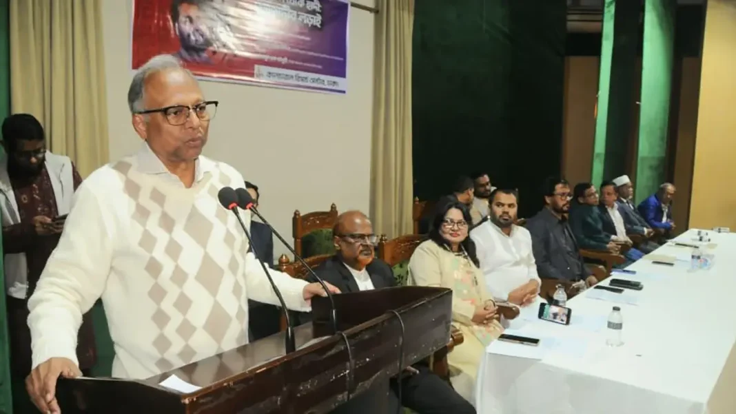 মঙ্গলবার সন্ধ্যায় রাজধানীর সুপ্রিম কোর্ট মিলনায়তনে কালচারাল রিসার্চ সেন্টার, ঢাকা আয়োজিত আলোচনা সভা “নজরুল ইসলাম থেকে হাদি: আজাদীর লড়াই” শীর্ষক অনুষ্ঠানে প্রধান অতিথির বক্তব্যে তিনি এসব কথা বলেন।